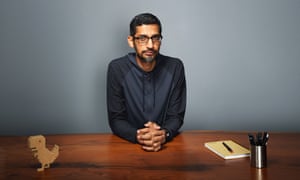 Now 45, Pichai is a tall, slight man whose voice is a soft harmony of Indian and American accents. Sitting in his office in a quiet corner of Google’s headquarters, in Mountain View, California, he speaks thoughtfully, often pausing to find the right phrase. The room houses a few pieces of designer furniture, and the requisite treadmill desk – the perfect metaphor for the pace Pichai has to keep up with. Yet his is a disarmingly calm presence, a world away from the prevailing stereotype of the macho-genius tech CEO; when Pichai got the job, one Google employee was quoted as saying: “All the ass-holes have left.”